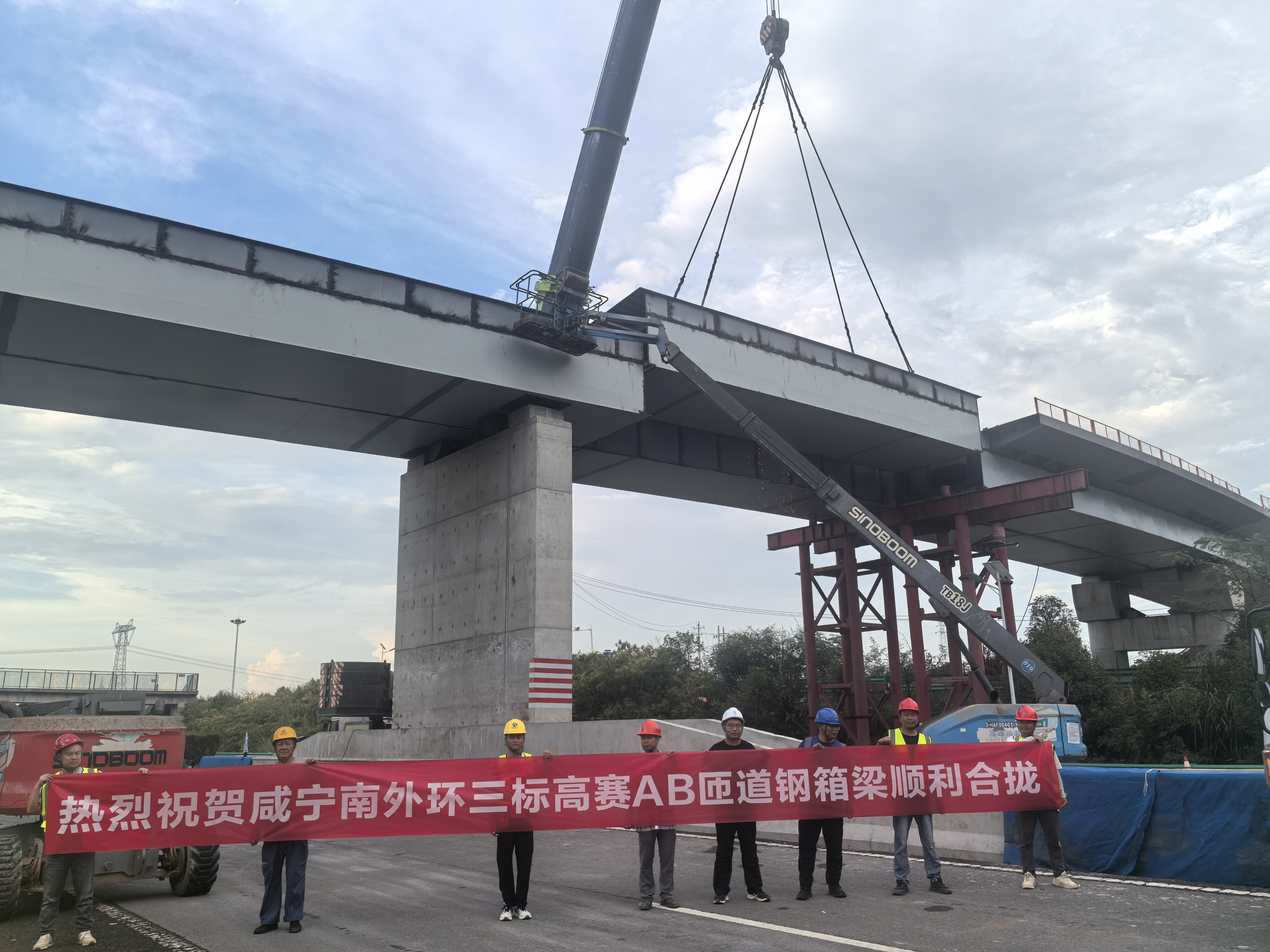 9月11日,隨著最后一節(jié)鋼箱梁精準就位,由興達公司承建的咸寧南外環(huán)高賽樞紐互通A、B匝道橋鋼箱梁架設(shè)圓滿完成。